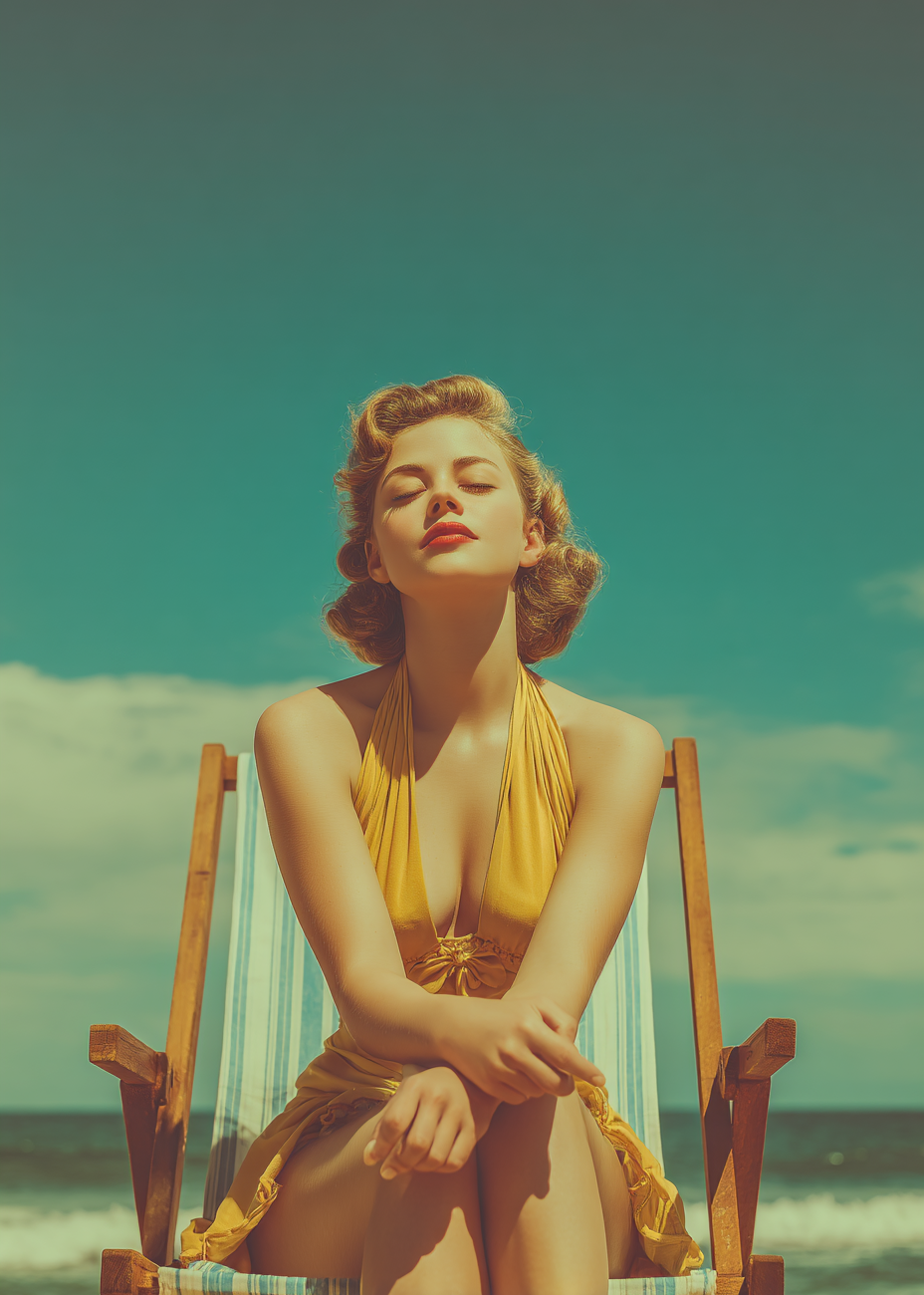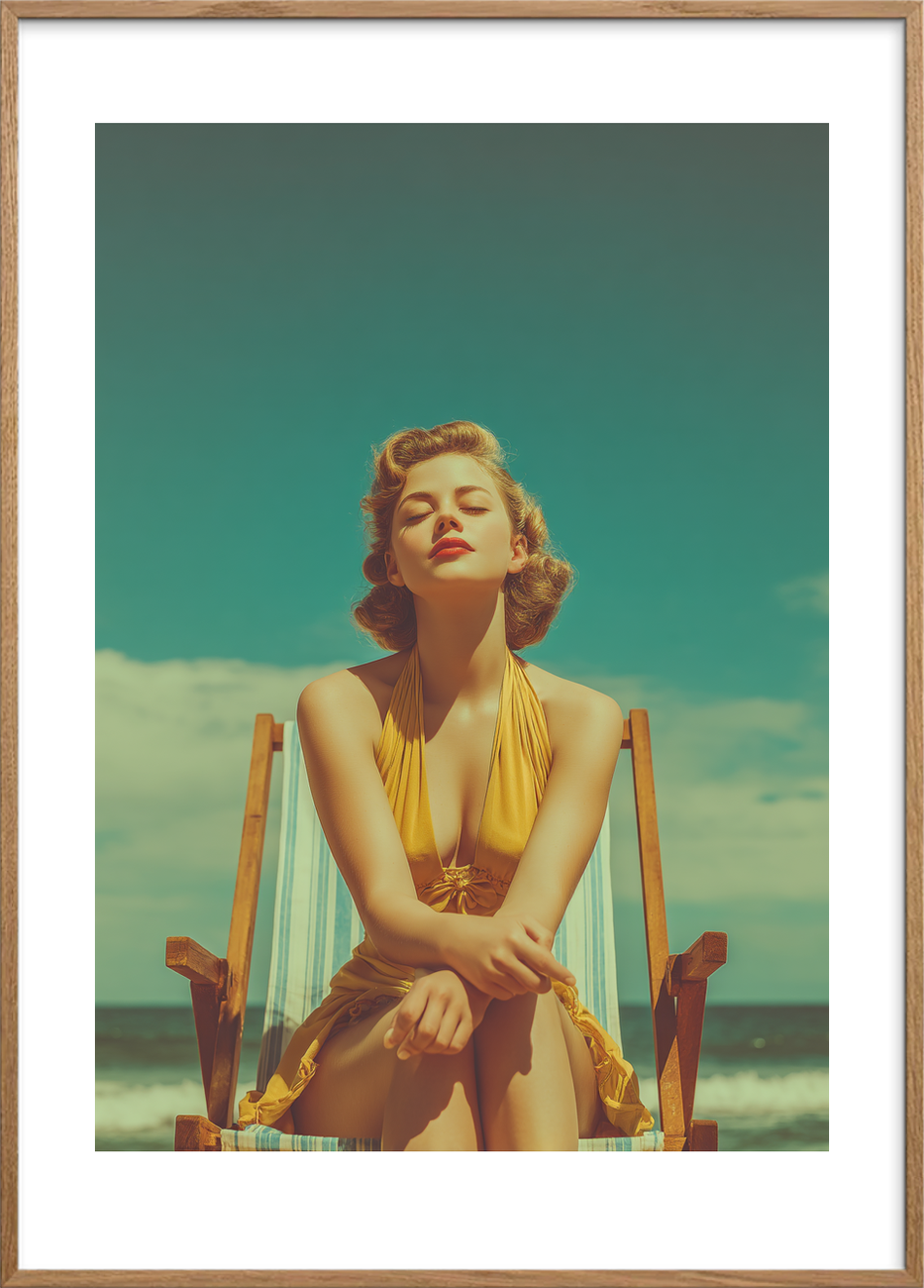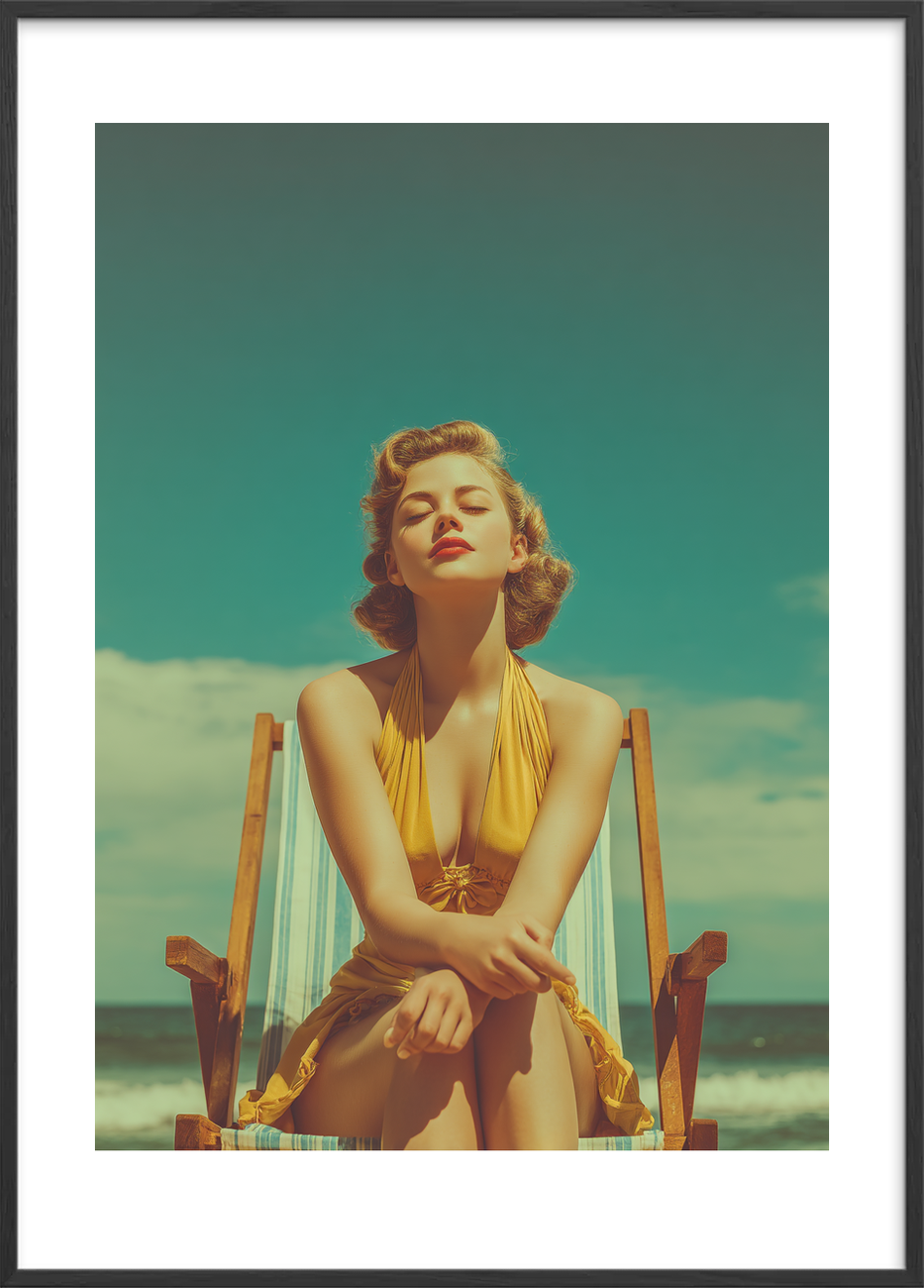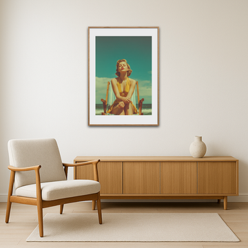 Fang sommerens klassiske glamour med denne elegante plakat, der løfter enhver væg med solvarm nostalgi og sart sensualitet. Motivets bløde hudtoner og markante gule badedragt er fremkaldt i høj opløsning og trykt på kvalitets papir for lang holdbarhed og dybe farver. I en pop-art-inspireret, vintage pin-up-stil kombinerer billedet fotografisk realisme med en farvepalet, der skaber en iøjnefaldende kontrast mellem turkis himmel og gyldne toner. Perfekt som statement i stuen, i sommerhuset eller som en stilfuld detalje i entreen — vælg mellem flere standardformater eller få den sendt indrammet. Ideel som gave til retro-entusiaster eller til dem, der ønsker et tidløst, stiliseret motiv med moderne printteknik og holdbare blækfarver. Denne plakat fra Artyficial leveres klar til ophæng og gør indretningen personlig og levende.