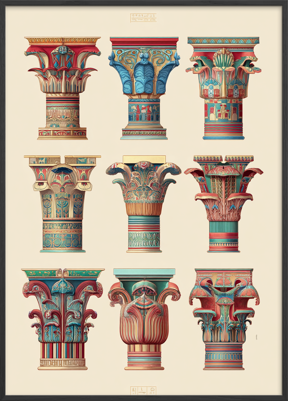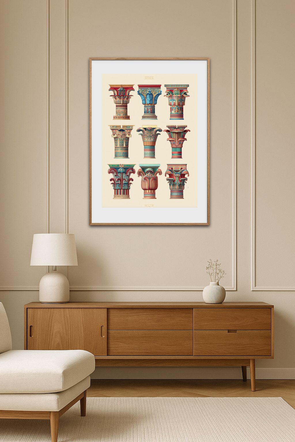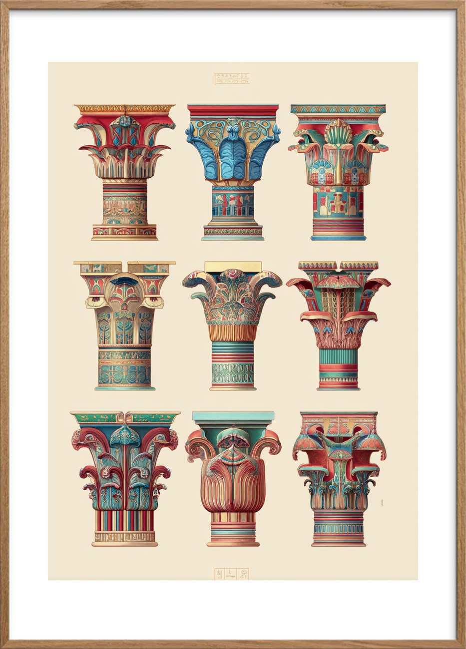 Egerammerne er i massiv egetræ, og de sorte rammer er sortmalet fyrretræ. Rammer på 30×40 cm leveres med rigtigt glas, mens rammer på 50×70 og 70×100 cm leveres med plexiglas af hensyn til transporten.