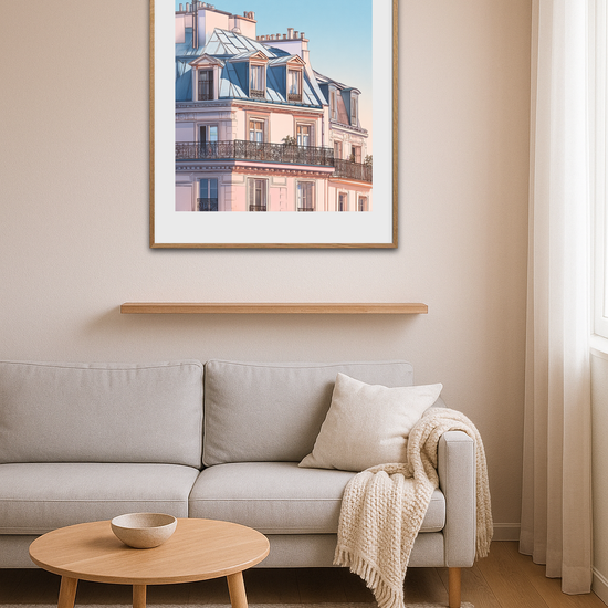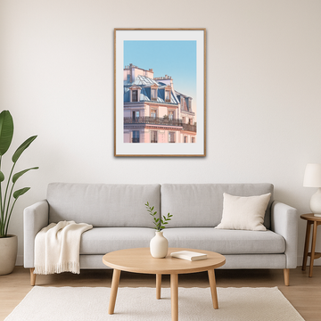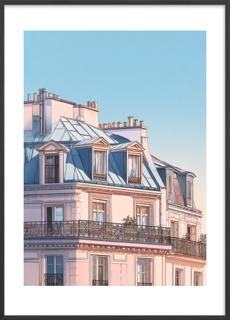 Skab en drømmende pariserstemning i dit hjem med denne elegante plakat, der fanger facadens fine detaljer og den blå himmels rolige nærvær. Trykt på kvalitets papir i høj kvalitet fremhæver plakaten sarte pasteltoner og præcis stregføring, hvilket gør motivet livfuldt uden at dominere rummet. Perfekt til stuen, kontoret eller som gave til arkitektur- og rejseentusiasten. Udføres i flere størrelser og leveres klar til indramning. Motivets balance mellem detaljeret byarkitektur og stille himmel giver et sofistikeret, men tilgængeligt udtryk. Stil: moderne grafisk illustration med inspiration fra klassisk bytegning og nutidig farveharmoni, ideel for dem der søger en moderne, kunstnerisk plakat med tidløs appel.